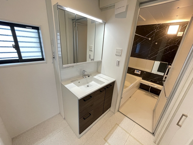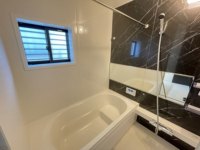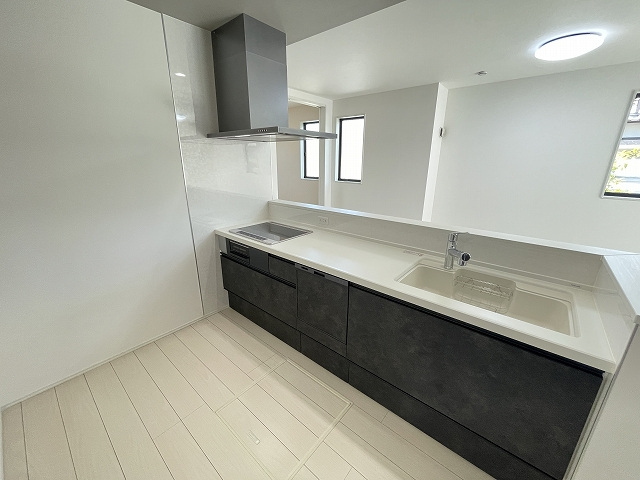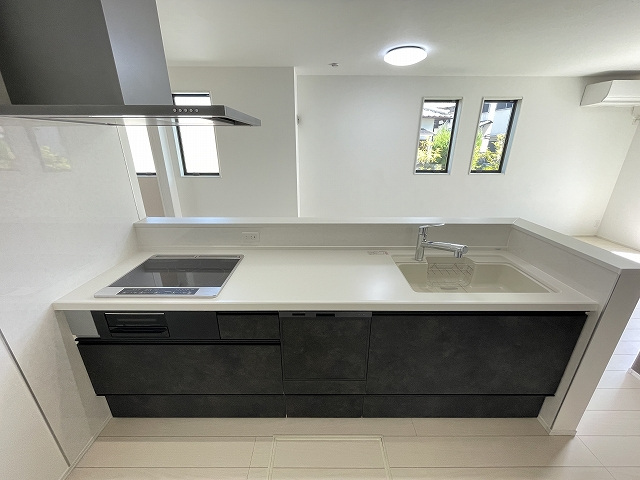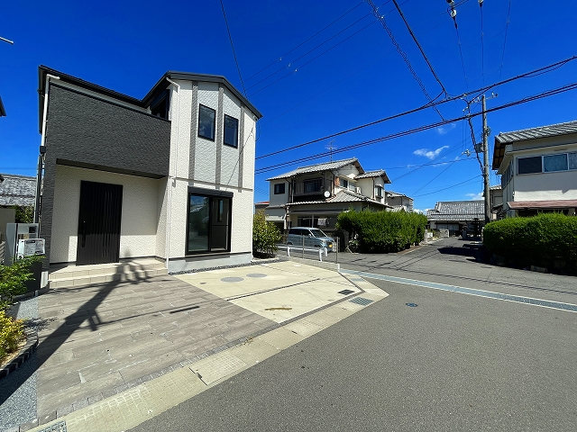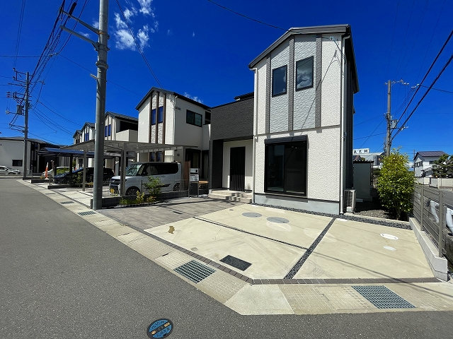 【設備】エコキュート、シャンプードレッサー(三面鏡タイプ)、ウォシュレット(1F・2F)、浴室換気乾燥暖房機付、天井スピーカー(Bluetooth対応ワイヤレス)、食器洗浄機付システムキッチン、リビング高性能エアコン1台設置、1Fシャッター・全居室網戸付、全窓Low-E複層ガラス、玄関ドアカードキー付、カラーモニター付インターホン、24時間換気システム