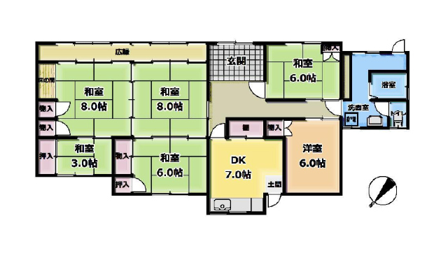 ●深日町駅まで徒歩約8分 ●深日小学校まで徒歩約6分 ●岬中学校まで徒歩約5分 ●日当たり良好 ●土地広々約155.44坪 ●駐車スペース3台分 ●部屋数豊富な6DK