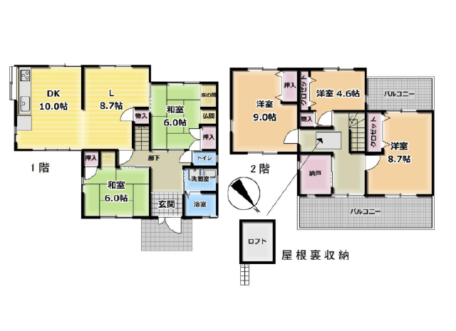 ●積水ハイムの軽量鉄骨造 ●オール電化住宅 ●全居室収納付き5SLDK+屋根裏収納 ●2面バルコニー ●カーポート有り ●コンビニまで徒歩約10分
