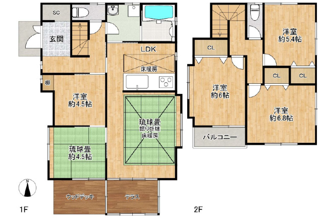 ●部屋数豊富な5LDK ●南向きバルコニーにつき日当たり良好 ●LDK一部床暖房・掘り炬燵有り ●テラスがございます ●閑静な住宅街内 ●鳴滝小学校まで徒歩約5分
