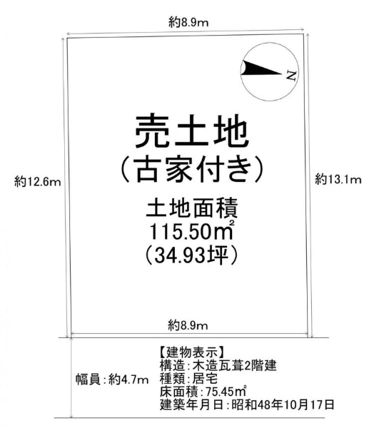 東 4.7m(幅員) 公道 8.9m(接面) |