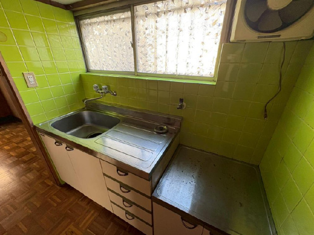 空家、駐車場(軽)、公営水道、個別プロパンガス、公共本下水、建物未登記・築年月不詳、建ぺい率オーバー |