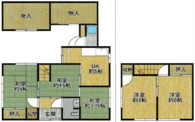 ●部屋数豊富な5DK ●南向きにつき日当たり良好 ●広々とした収納スペースがございます ●深日小学校まで徒歩約4分 ●南海多奈川線深日町駅まで徒歩約4分