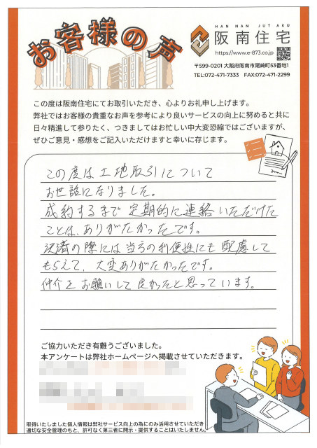 この度は土地取引についてお世話になりました。