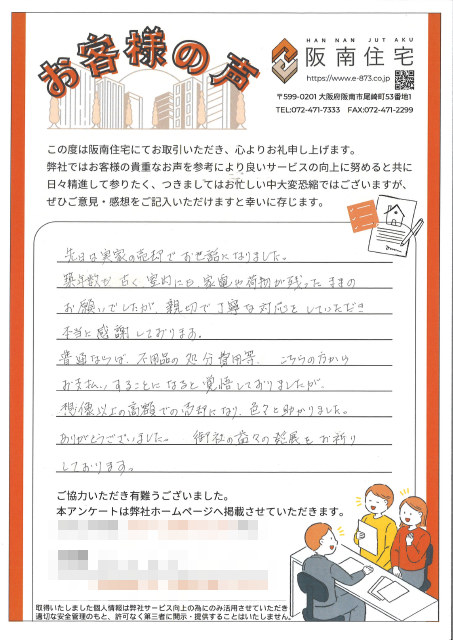 阪南市舞の中古戸建をご売却いただいたN様